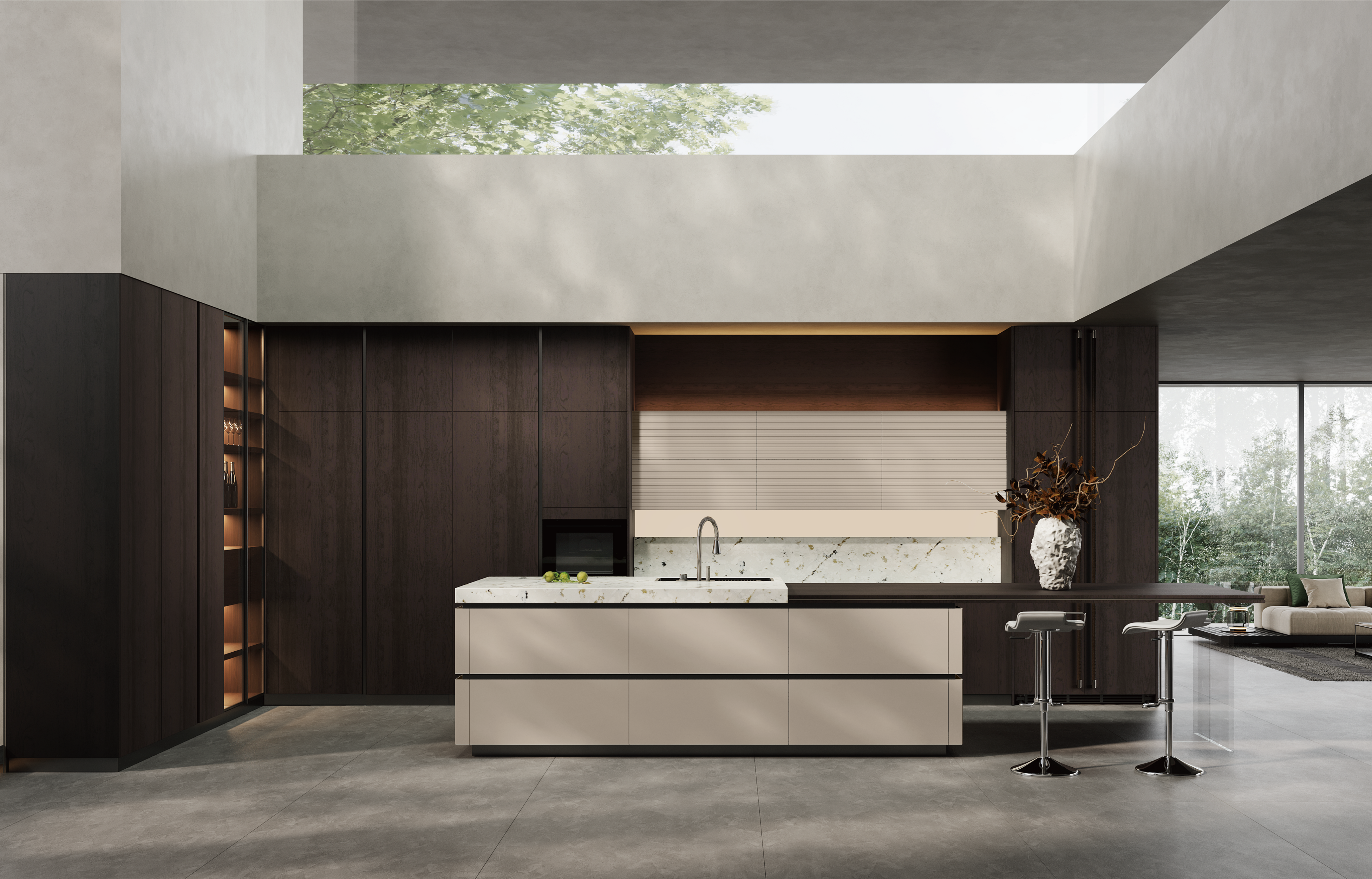 通过z6.com厨柜量体裁柜,定制出适合主厨下厨的烹饪区和洗涤区的舒适高度。